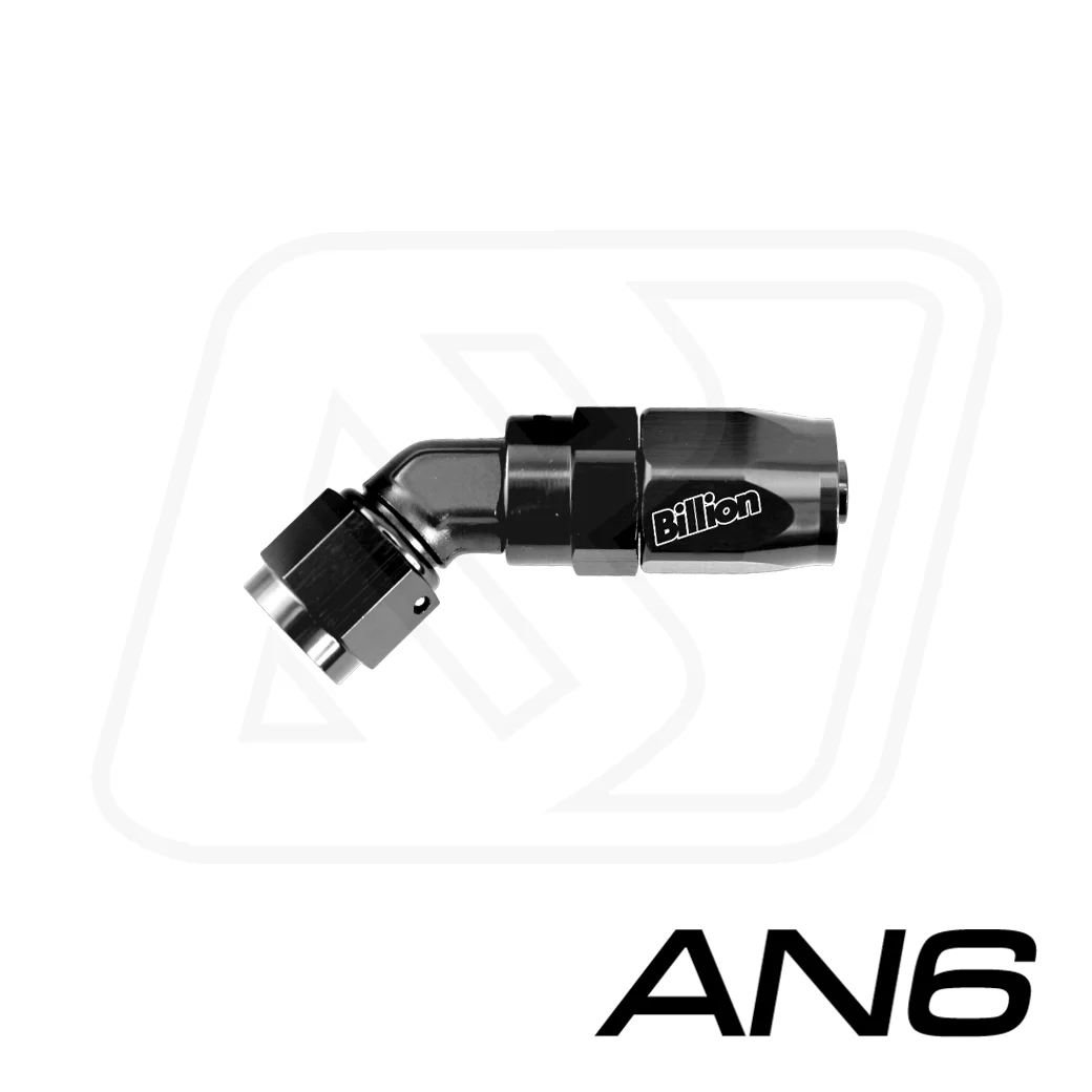 ข้อต่อ AN6 Billion แบบ 45° เลือกได้ตามการใช้งาน ผลิตจากวัสดุอลูมิเนียม น้ำหนักเบา แข็งแรง ทนแรงดันสูง BLACK สำหรับงานอัพเกรดระบบน้ำมัน