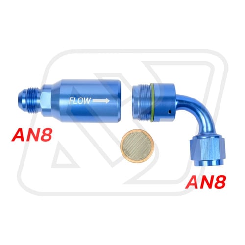 ตัวกรองมาพร้อมหัวโค้ง 90 องศา ช่วยประหยัดพื้นที่ในการติดตั้ง เหมาะกับรถแต่งที่มีพื้นที่จำกัด และต้องการมุมต่อท่อที่สะดวกปลอดภัย ระบบเชื่อมต่อแบบเกลียวตัวเมีย AN8 ช่วยให้ติดตั้งได้ง่ายและแน่นหนา รองรับกับอุปกรณ์เชื้อเพลิงเรซซิ่งที่ใช้มาตรฐานเดียวกัน