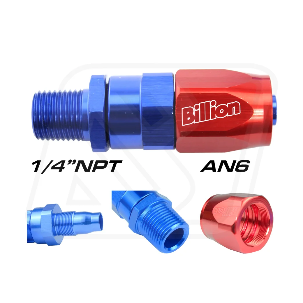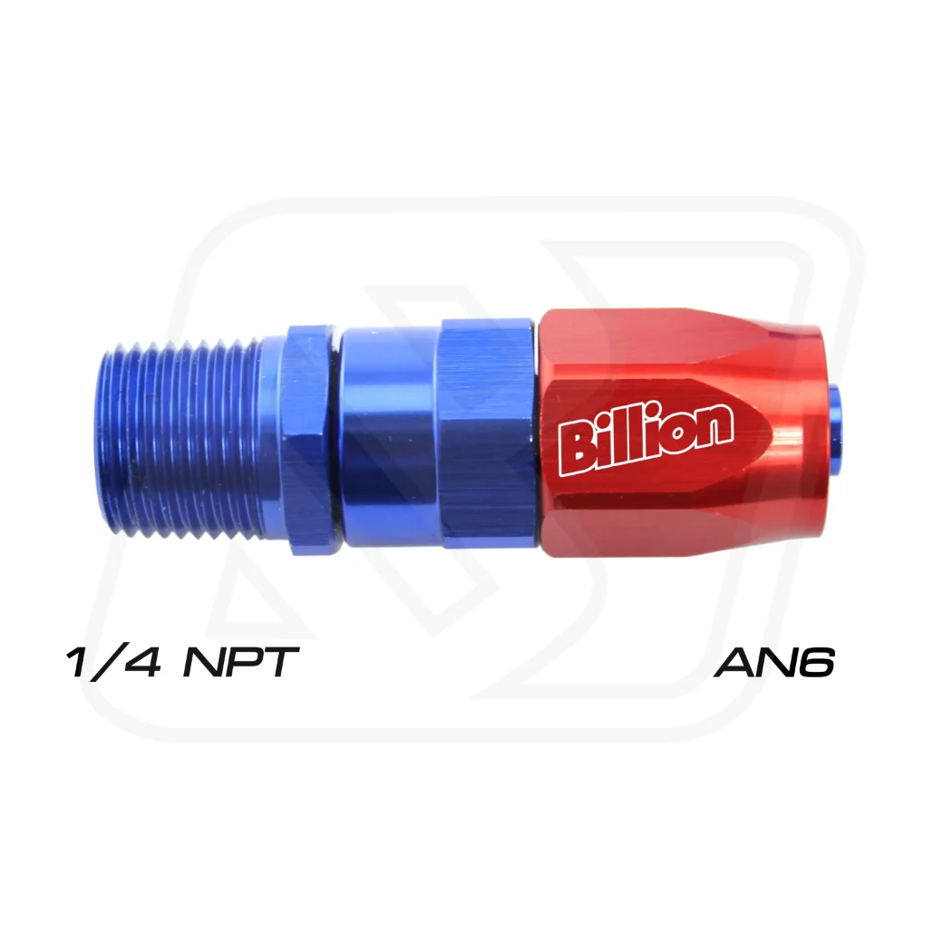 ข้อต่อตรง Billion AN6 ใช้แปลงออกเกลียว NPT สำหรับระบบน้ำมันเชื้อเพลิง และระบบแรงดันต่างๆ เช่น ออยคูลเลอร์ หรือ Turbo Line ผลิตจากวัสดุอลูมิเนียม แข็งแรง ทนแรงดันสูง ใช้งานได้จริงทั้งรถแต่งและ Motorsport