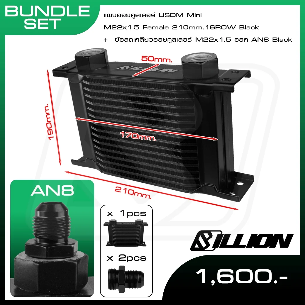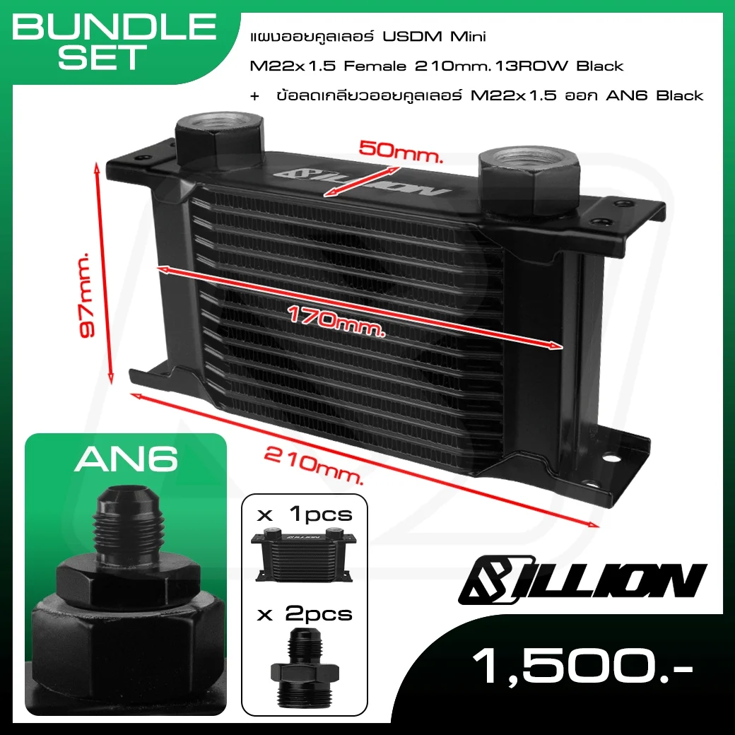 Billion แผงออยคูลเลอร์ USDM Mini M22x1.5 Female 210mm [10Row ออก AN6] (10Row ออก AN6)
