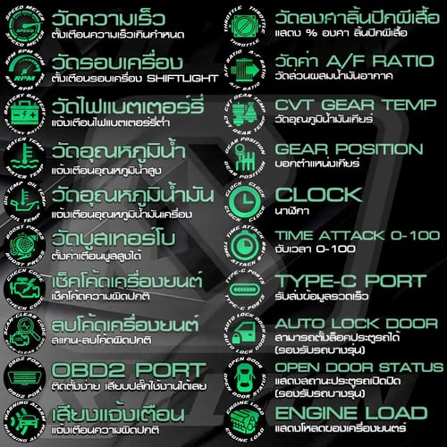 เกจวัดอัจฉริยะผ่านพอร์ต OBD2 สำหรับรถยนต์ รองรับทั้งรุ่น Euro และ Universal / ขายึดกระจกเกจวัด